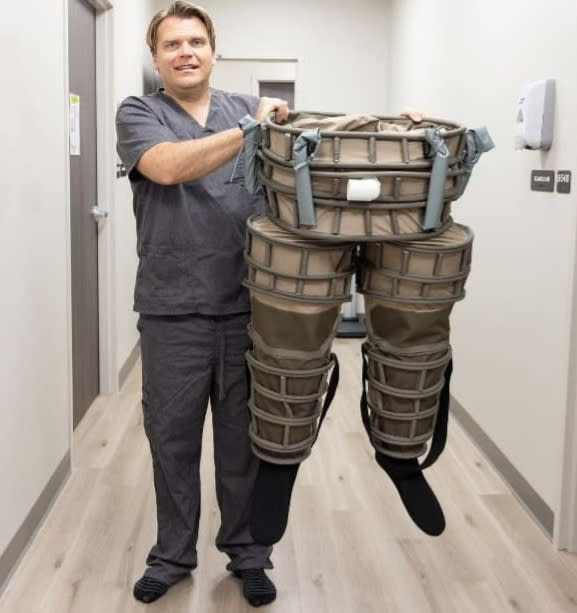 University of Texas at Arlington researcher Michael Nelson developed patent-pending lower body negative-pressure pants to improve exercise stress tests inside MRI machines.