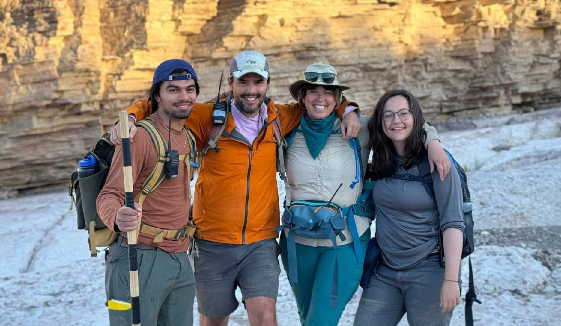 From left: Isaac Rangel-Landeros BS’23, Dr. Zachary Sickmann, Dr. Kristina Butler and Madigan Blake BS’23 are shown at El Solitario in Big Bend State Park, Texas.